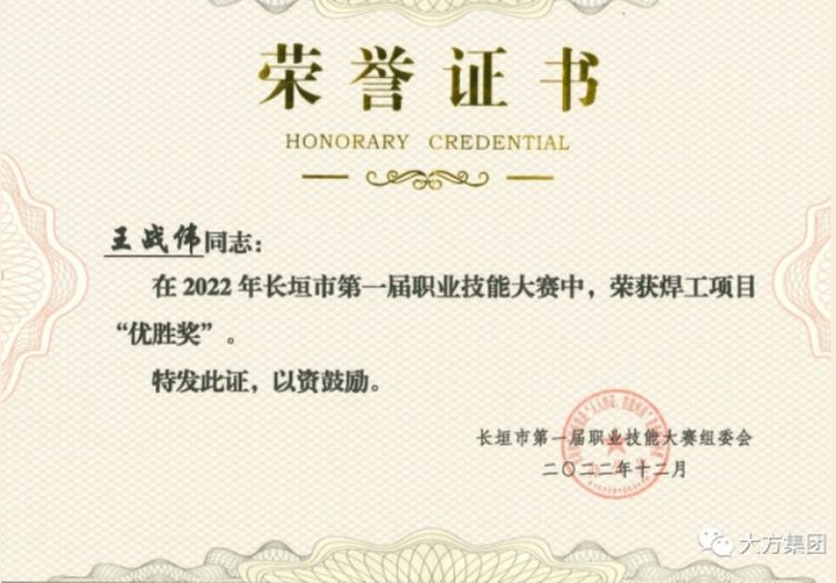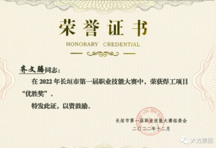 人人出彩,技能強(qiáng)國(guó)!2月2日,長(zhǎng)垣市職業(yè)技能大賽表彰大會(huì)在長(zhǎng)垣烹飪職業(yè)技術(shù)學(xué)院隆重舉行,大會(huì)對(duì)本次技能大賽表現(xiàn)突出的集體和個(gè)人進(jìn)行表彰,大方重裝技術(shù)質(zhì)量部柳家武榮獲“裁判員”榮譽(yù)稱號(hào),重機(jī)生產(chǎn)設(shè)備部齊文騰、重裝生產(chǎn)部王戰(zhàn)偉分別榮獲焊工項(xiàng)目“優(yōu)勝獎(jiǎng)”。